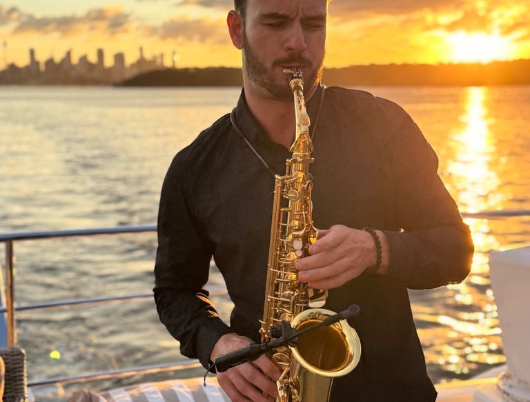 Bruno Sax is a professional saxophonist based in Sydney, Australia, known for his vibrant performances and smooth sound that brings life to every event. Originally from Brazil, Bruno combines his Latin passion with modern elegance, creating unforgettable musical moments for weddings, corporate events, private parties, and sunset celebrations.